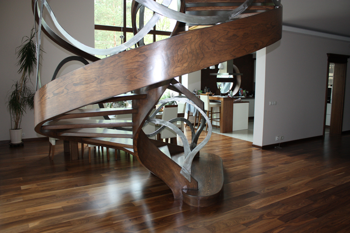 Specjalizujemy się w wytwarzaniu schodów giętych. Pracujemy w szlachetnym drewnie krajowym jak równiez we wszelkich gatunkach drewna egzotycznego.